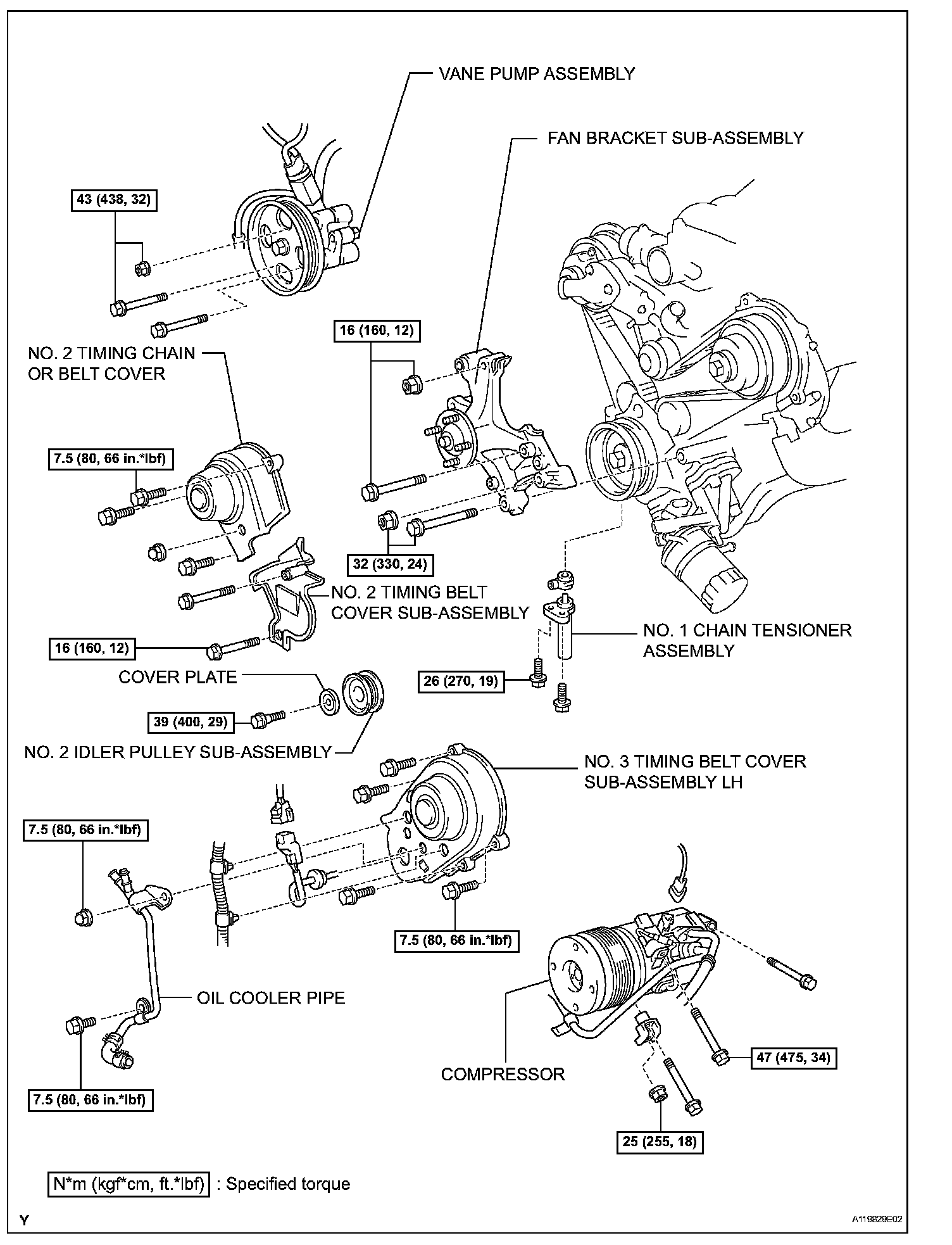 (a) Remove the 2 bolts and No. 2 timing belt cover subassembly.