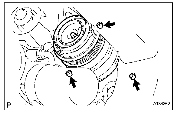 (a) Install the idler pulley with the 2 bolts and 2 nuts.