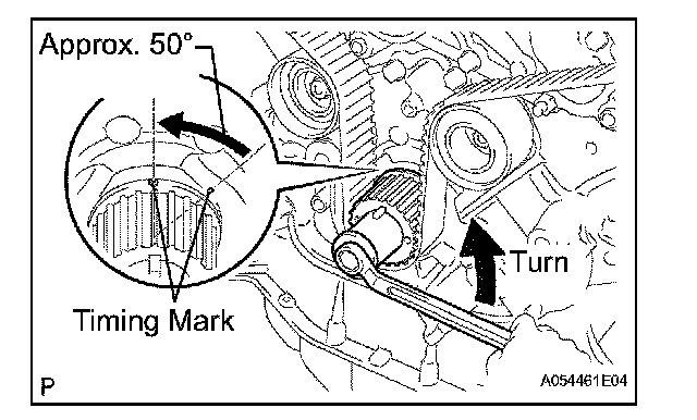 (3) Using the crankshaft damper bolt, turn the crankshaft counterclockwise by approximately 50°.