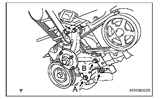 If the installation marks have disappeared, put a new installation mark on the timing belt before removing each part.