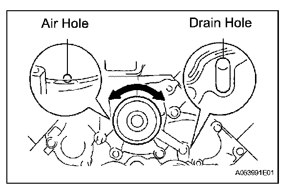 (1) Using the crankshaft damper bolt, slowly turn the crankshaft pulley 2 revolutions from the TDC to TDC.