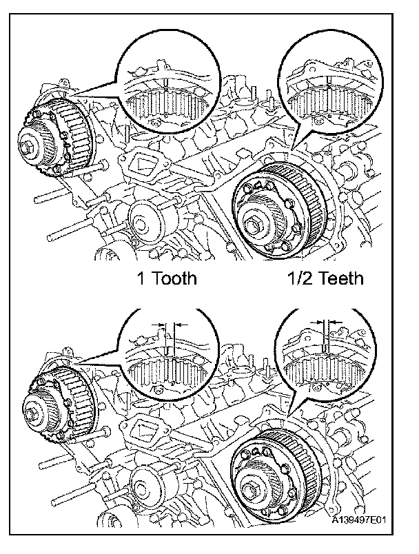 1/2 teeth turn for the left bank camshaft timing pulley