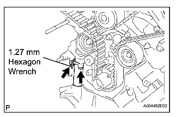 (3) Using pliers, remove the 1.27 mm hexagon wrench from the chain tensioner.