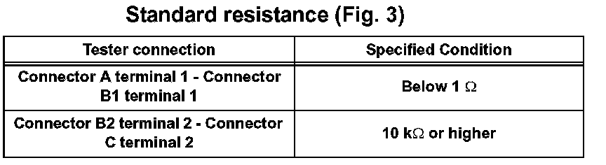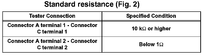 1. Disconnect connectors A and C and measure the resistance between the terminals of the connectors.