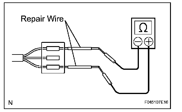 b. If it is impossible to check resistance from the back of the connector, use a repair wire to check it.