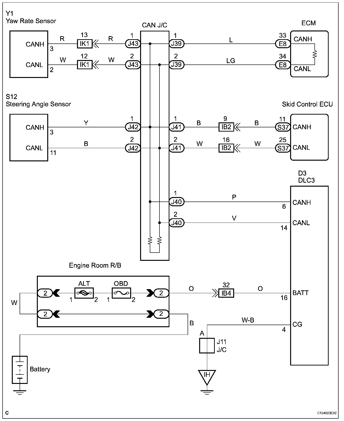 DLC3 and the yaw rate sensor connector to specify the trouble area.