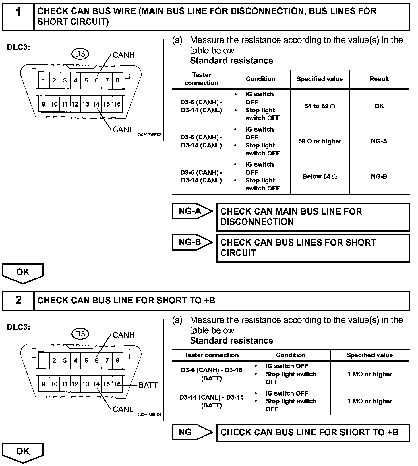 CAN Bus Line DESCRIPTION When any DTC of the CAN communication system is output, first measure the resistance between the terminals of the