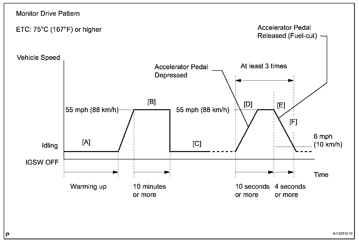 6. Drive the vehicle at 55 mph (88 km/h) or more for at least 10 minutes [B].
