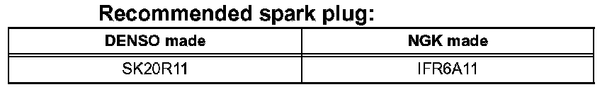 - The spark plug should be replaced every 200,000 km (120,000 miles).