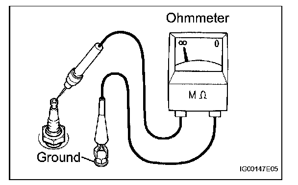 1. Using an ohmmeter, measure the insulation resistance. Correct insulation resistance: 10 mohms or more