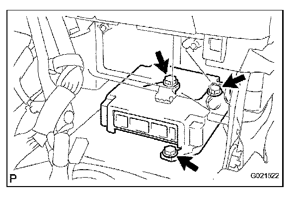 c. Temporarily install the center airbag sensor assembly with the 3 bolts.
