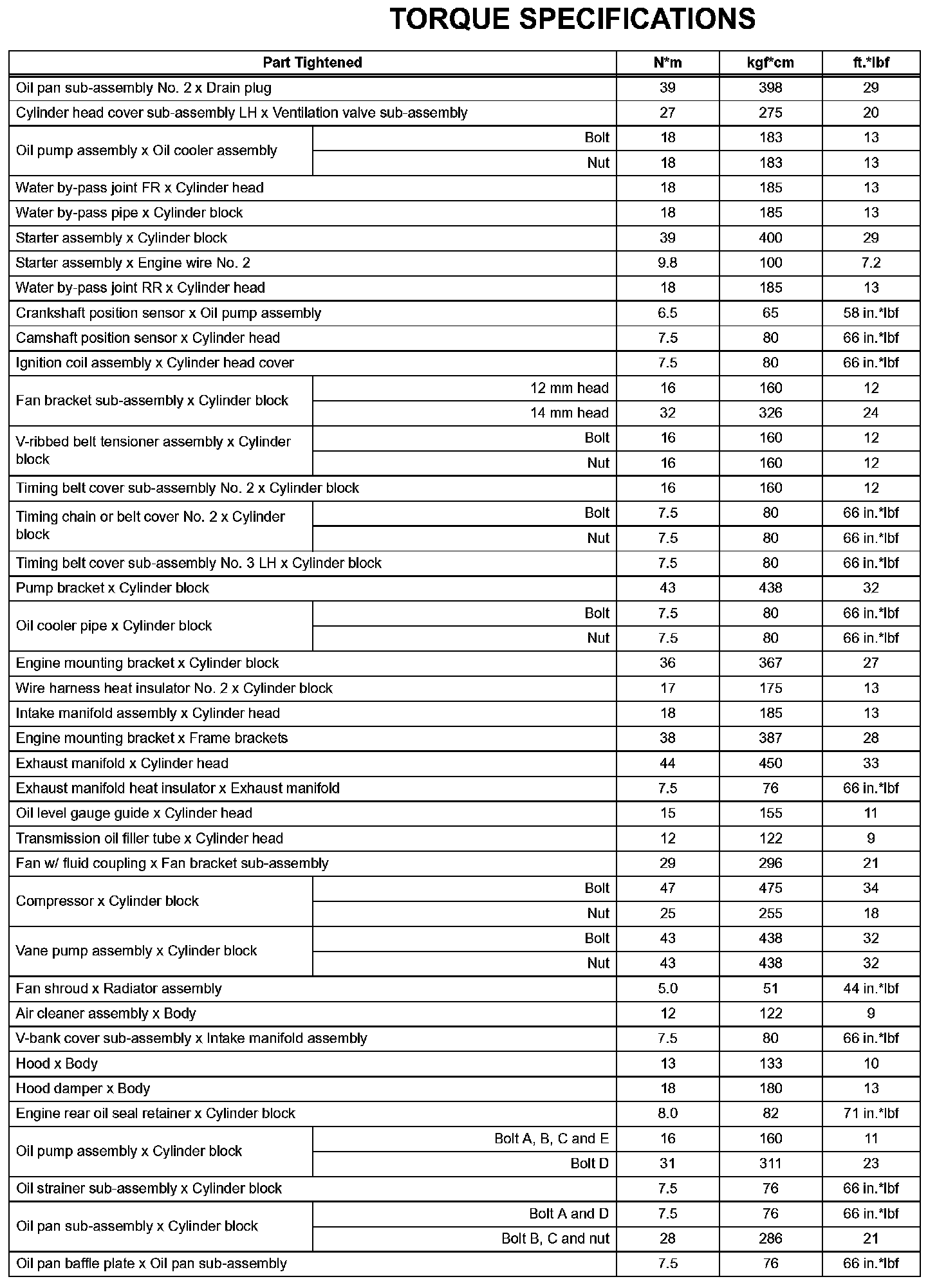 Engine Mechanical - Torque Specifications (Part 2):