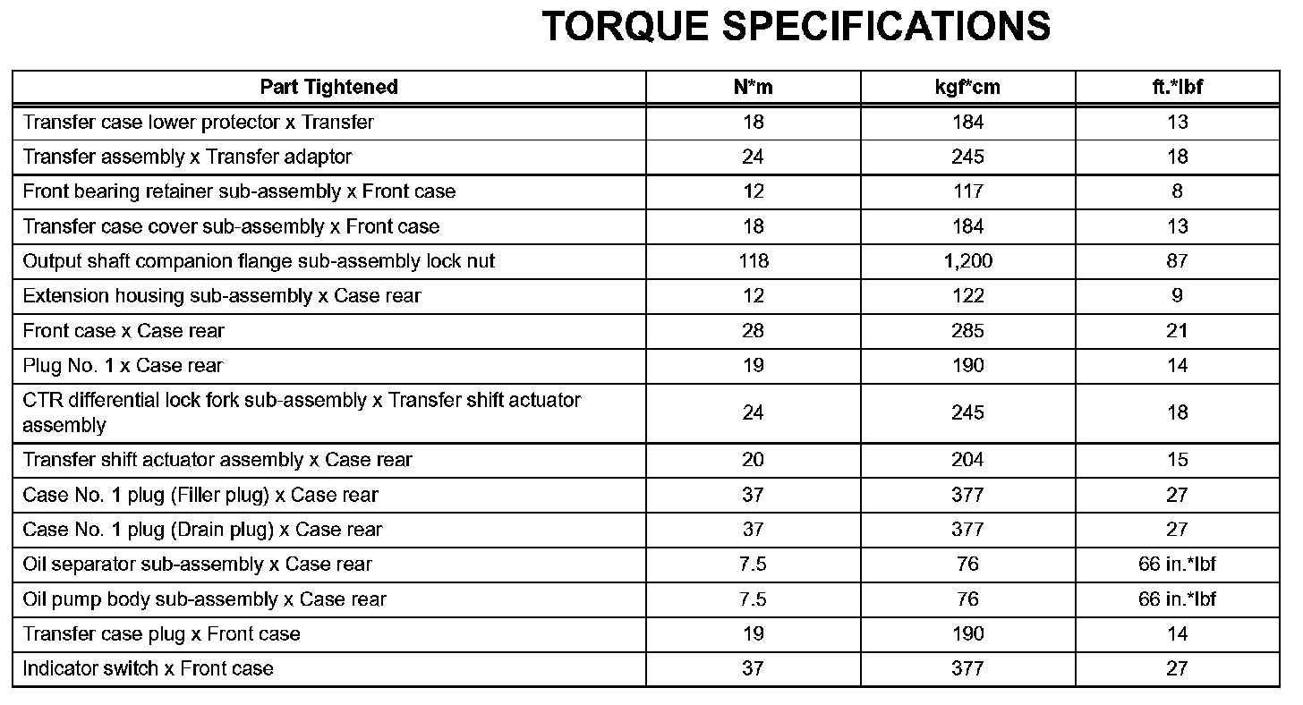Transfer - Torque Specifications: