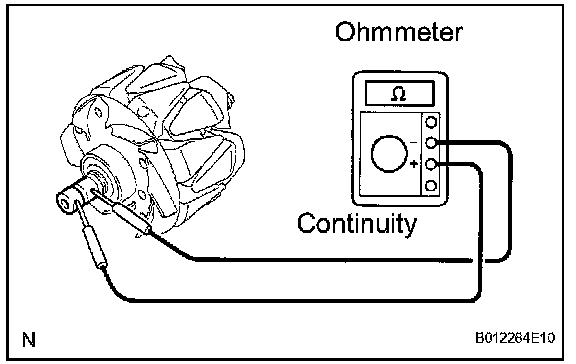 1. Using an ohmmeter, check that there is no continuity between the slip ring and rotor.