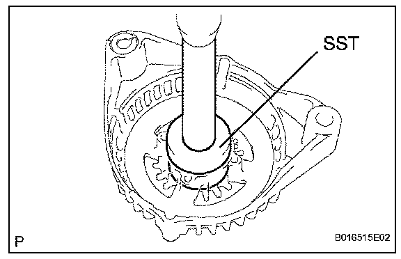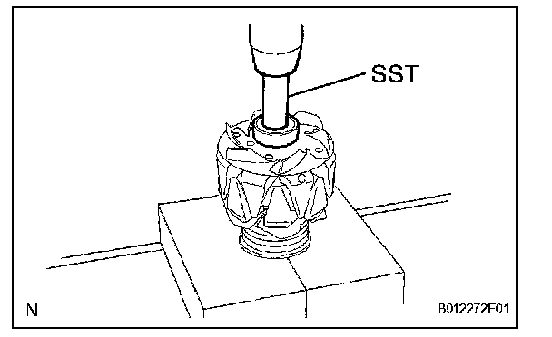 b. Using SST and a hammer, tap out the bearing.