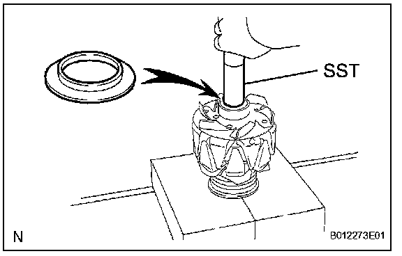b. Using SST, push in the bearing cover (outside).