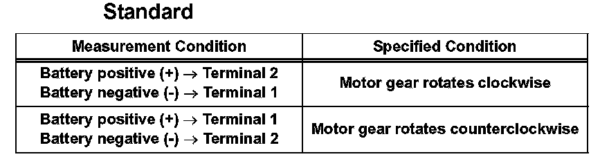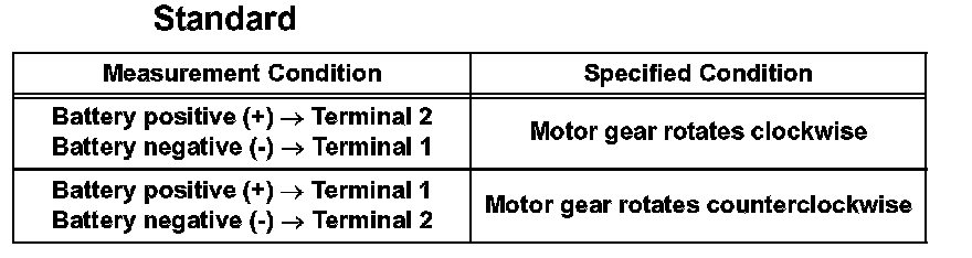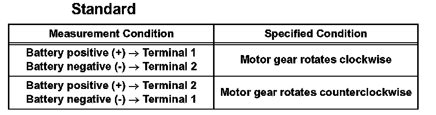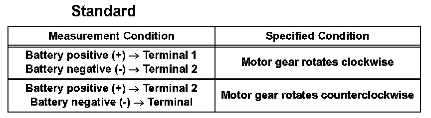 a. Apply battery voltage to the motor connector according to the table.
