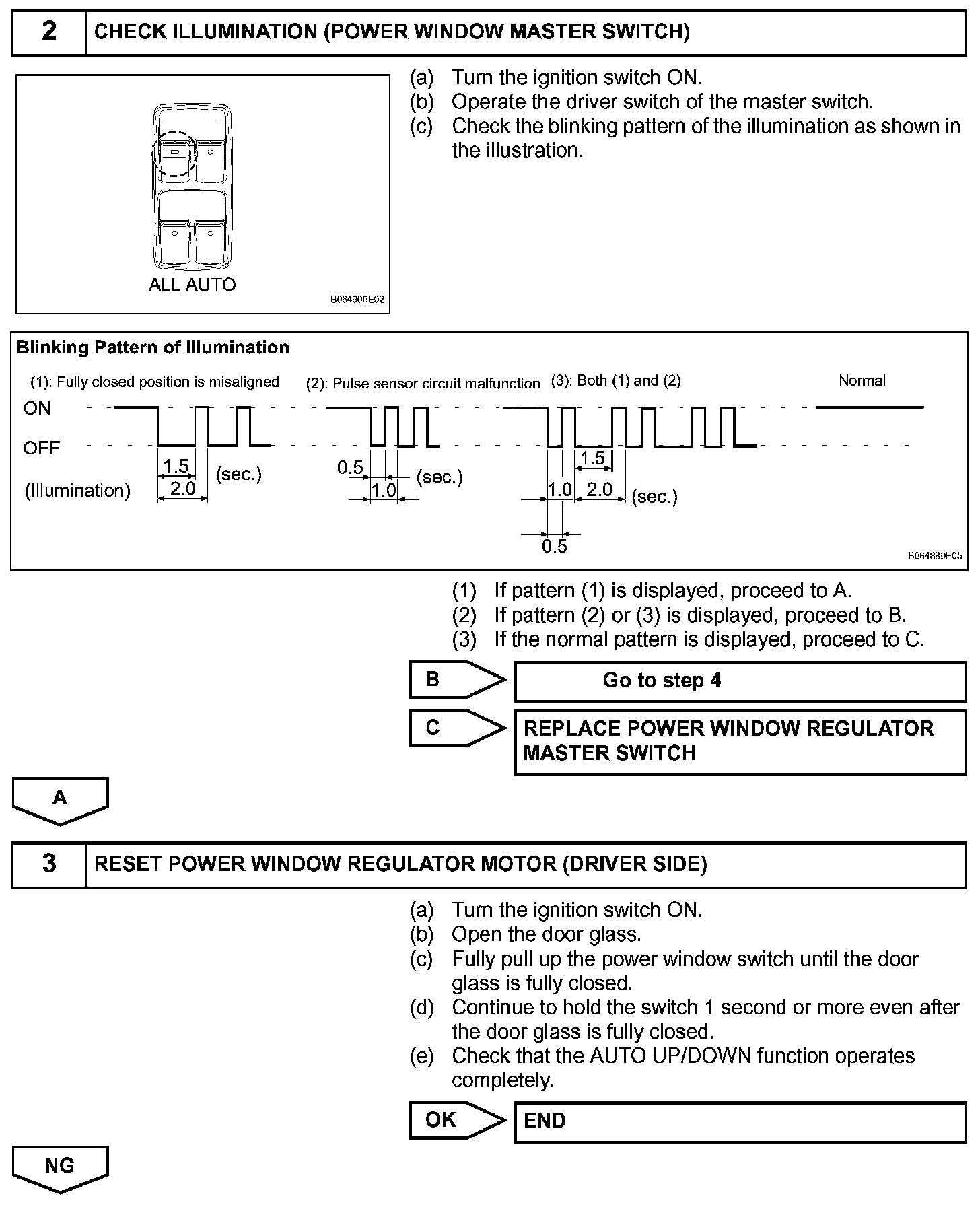 If the AUTO UP/DOWN function does not operate, any of the following troubles may be the cause: