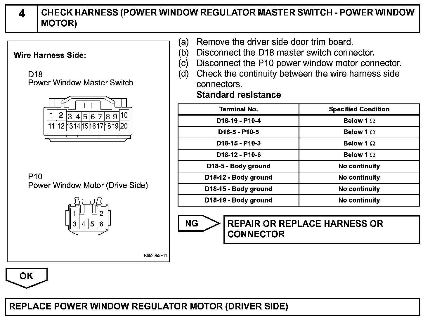 - There is an open or short circuit in the wiring between the power window switch and the corresponding power window motor.