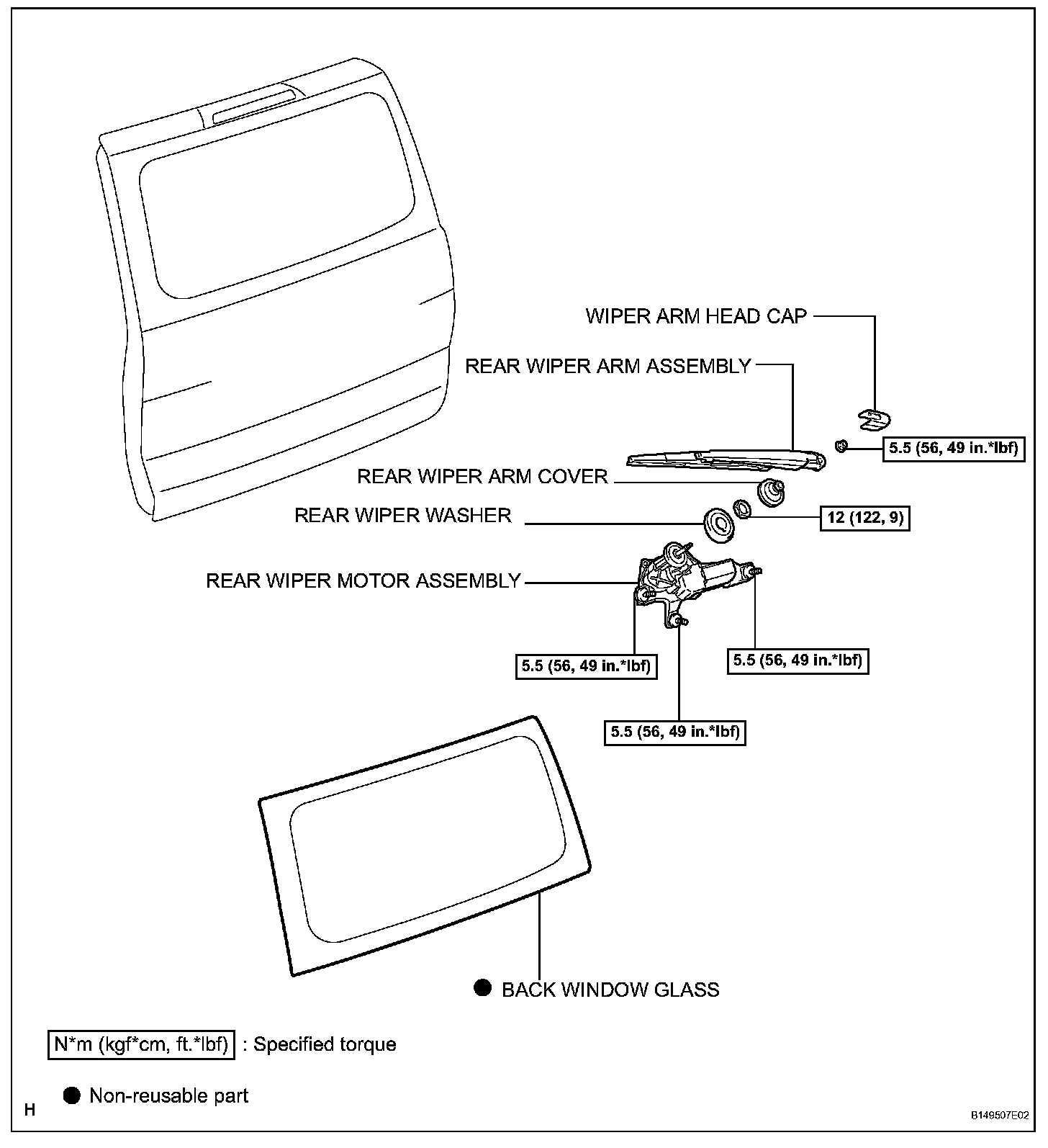b. Remove the rear wiper arm assembly.