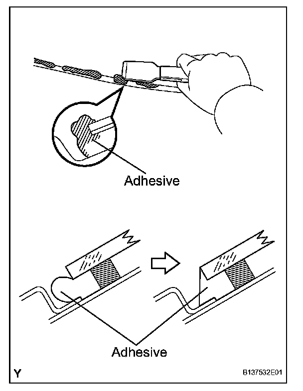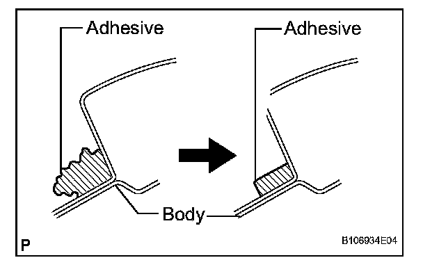 c. Apply adhesive (Adhesive: TOYOTA genuine windshield glass adhesive or equivalent).