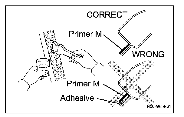 a. Using a brush, coat the installation surface on the vehicle body with Primer M.
