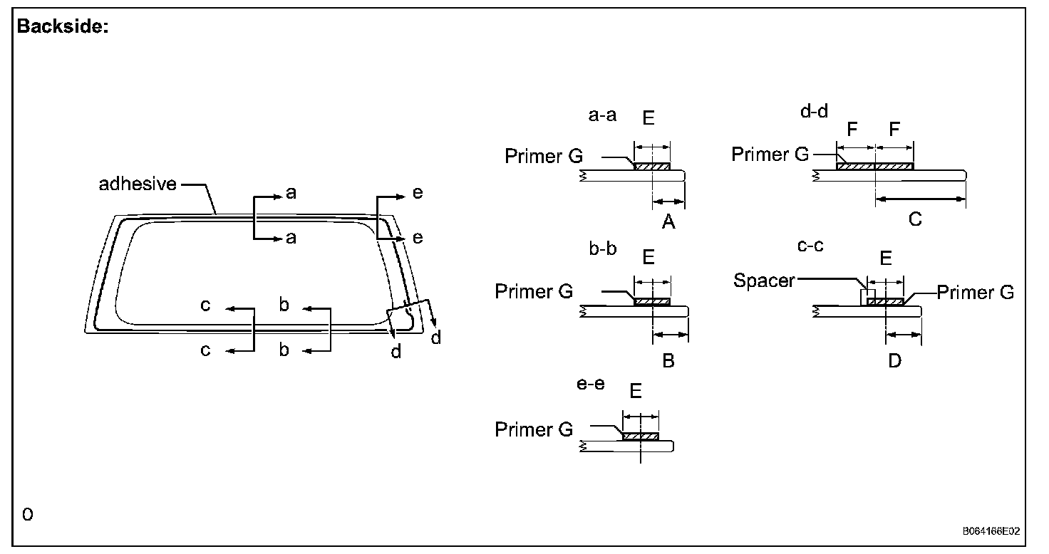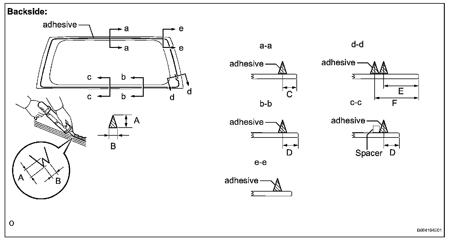 3. Apply adhesive to the back window glass, as shown in the illustration.