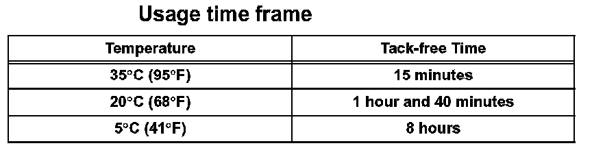 HINT: After cutting off the tip, use all adhesive within the time described in the table below.