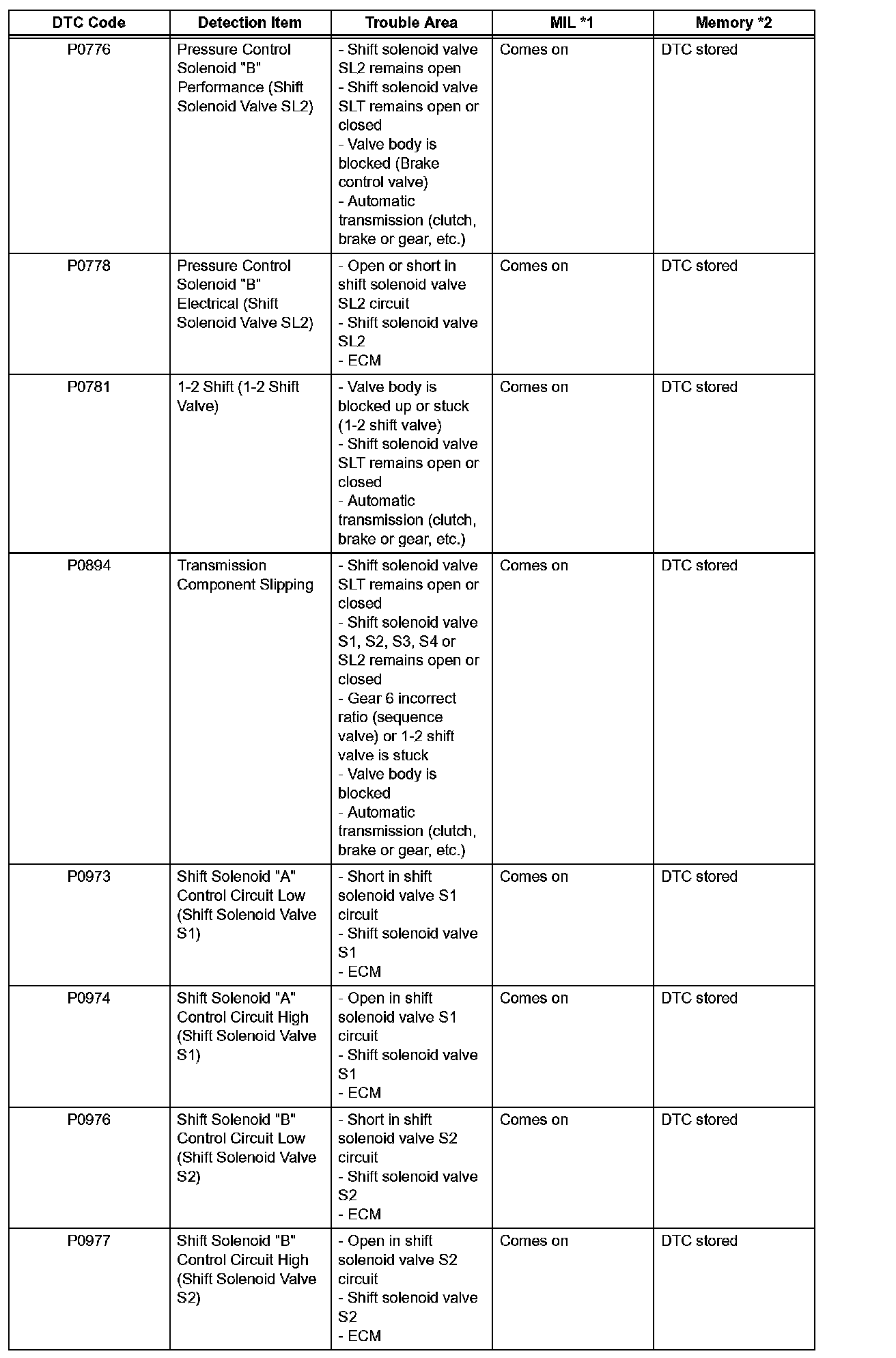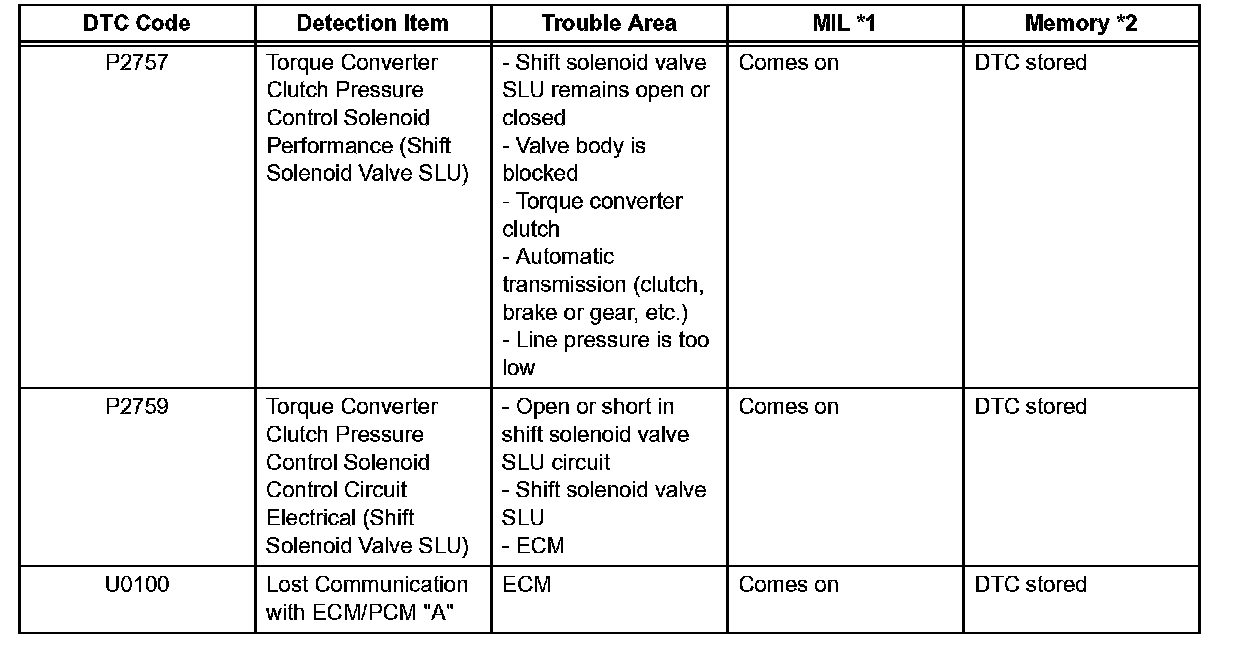 *1: Comes on MIL (Malfunction Indicator Lamp) light up