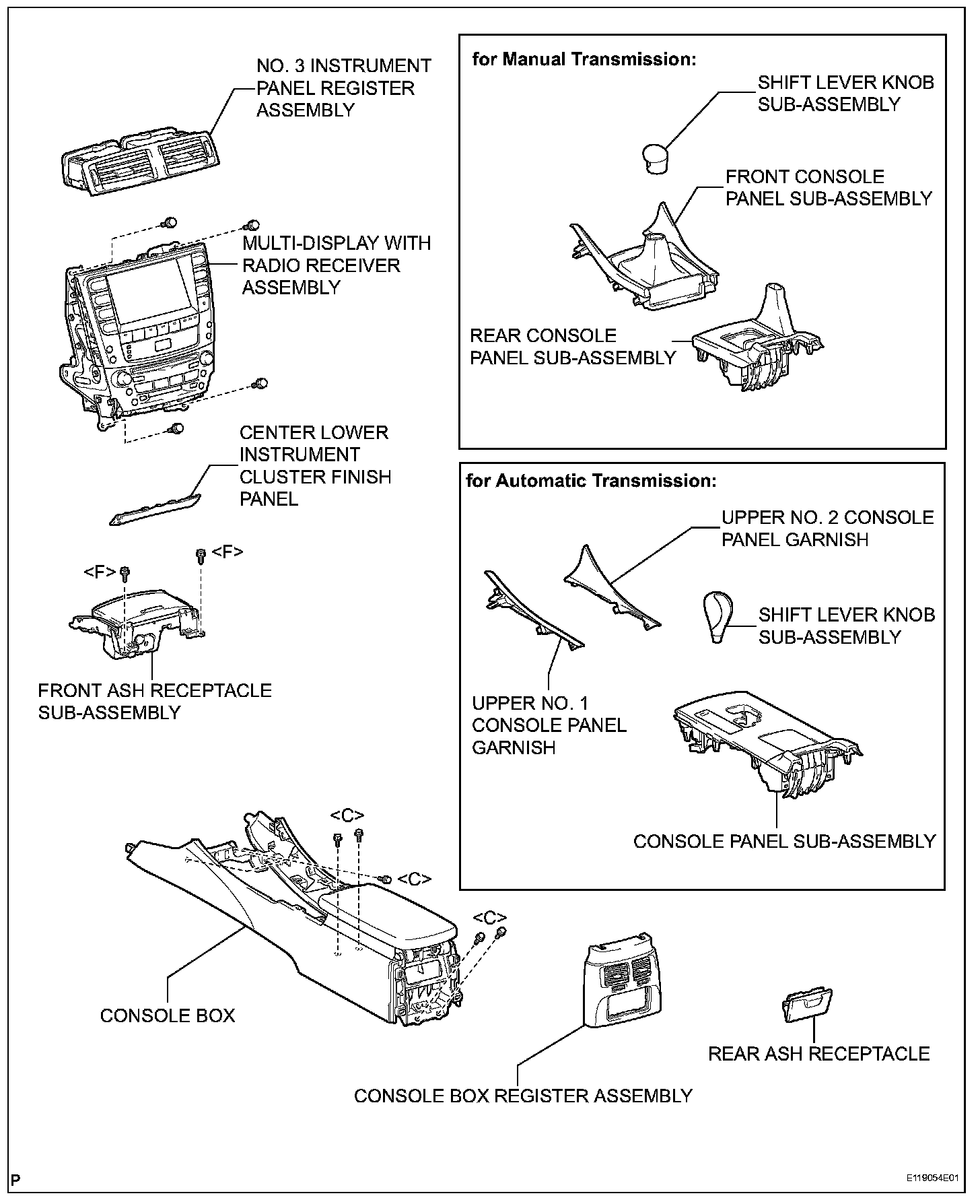 7. REMOVE FRONT CONSOLE PANEL SUB-ASSEMBLY (for Manual Transmission)