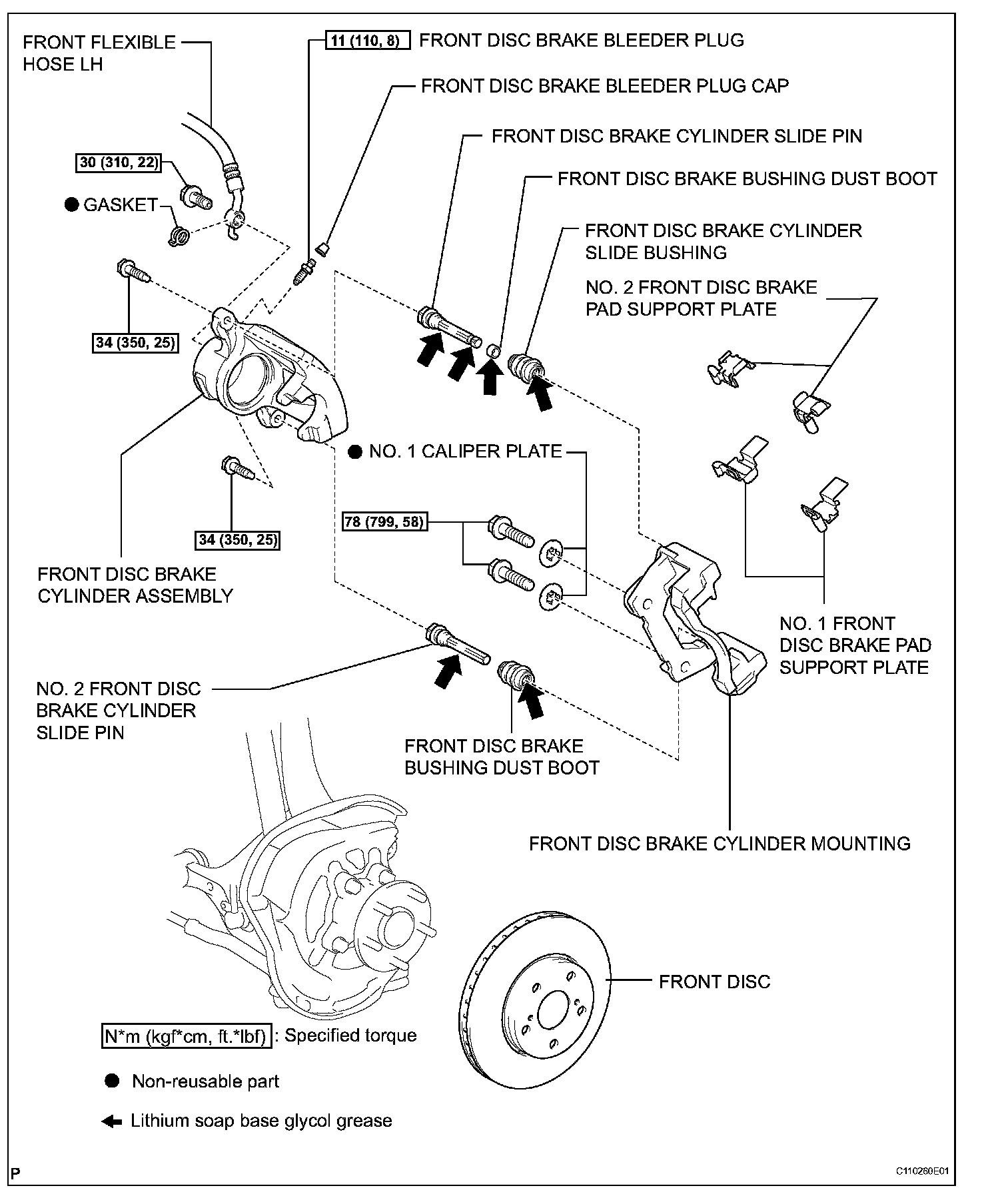 FRONT BRAKE (for 4GR-FSE)COMPONENTS: