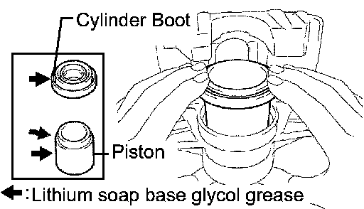 a. Apply lithium soap base glycol grease to the piston and a new cylinder boot.