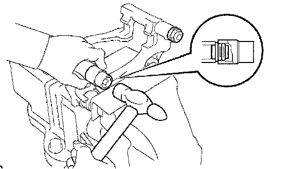 c. Using a socket wrench (21 mm) and a hammer, install the 2 bushing dust boots.