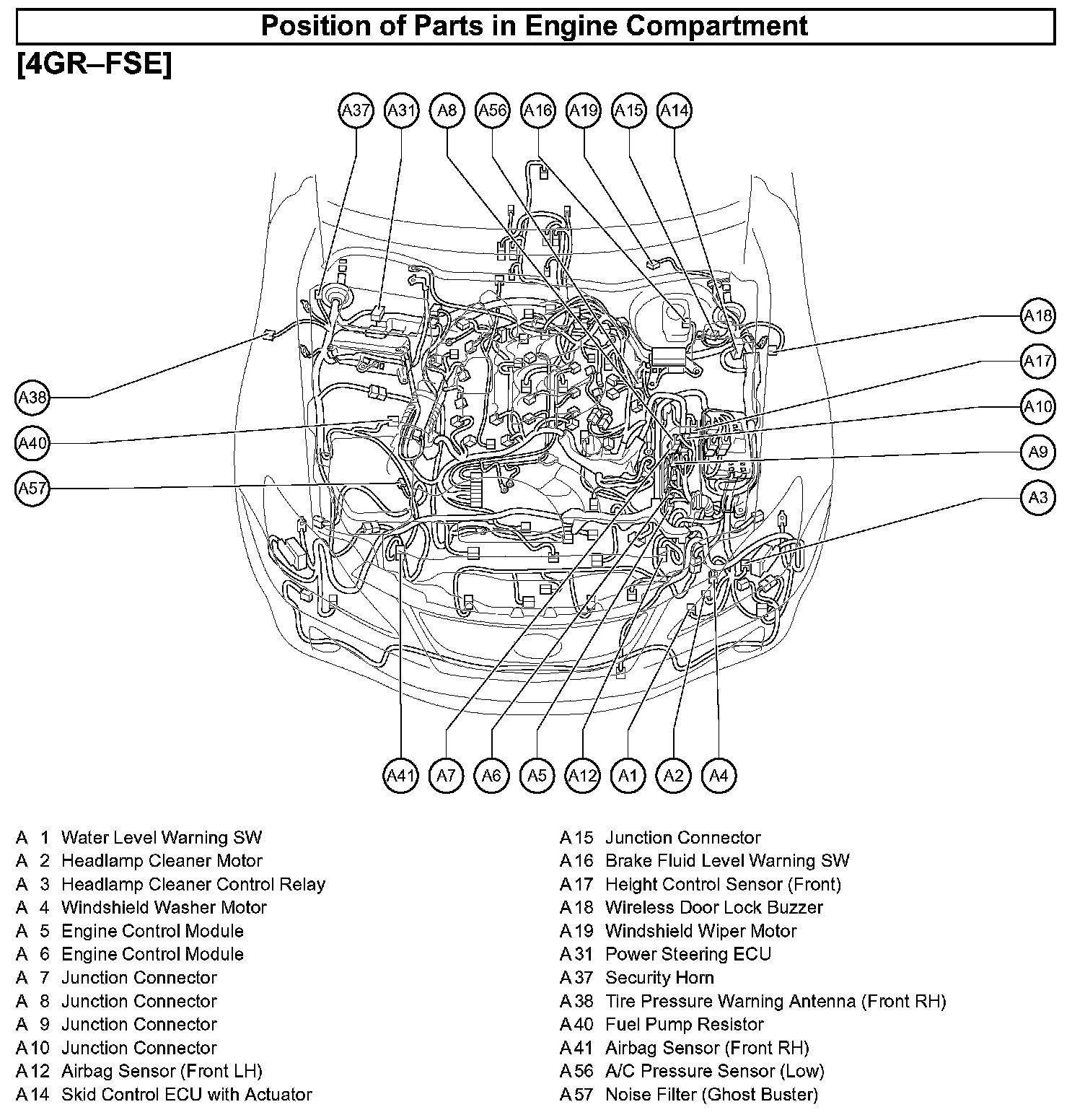 Position of Parts In Engine Compartment