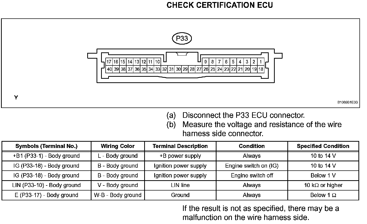 Terminals Of Control Module/Pinouts - Check Certification ECU: