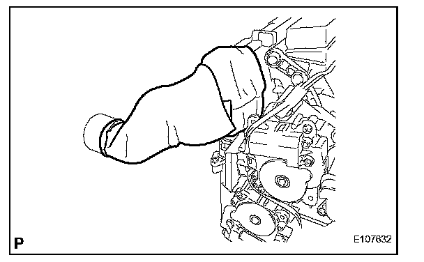 d. Using a hexagon wrench 4 mm, install the air conditioning tube assembly with the 2 hexagon bolts.