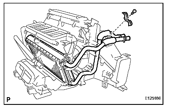 b. Using a hexagon wrench 4 mm, remove the 2 hexagon bolts and air conditioning tube assembly.