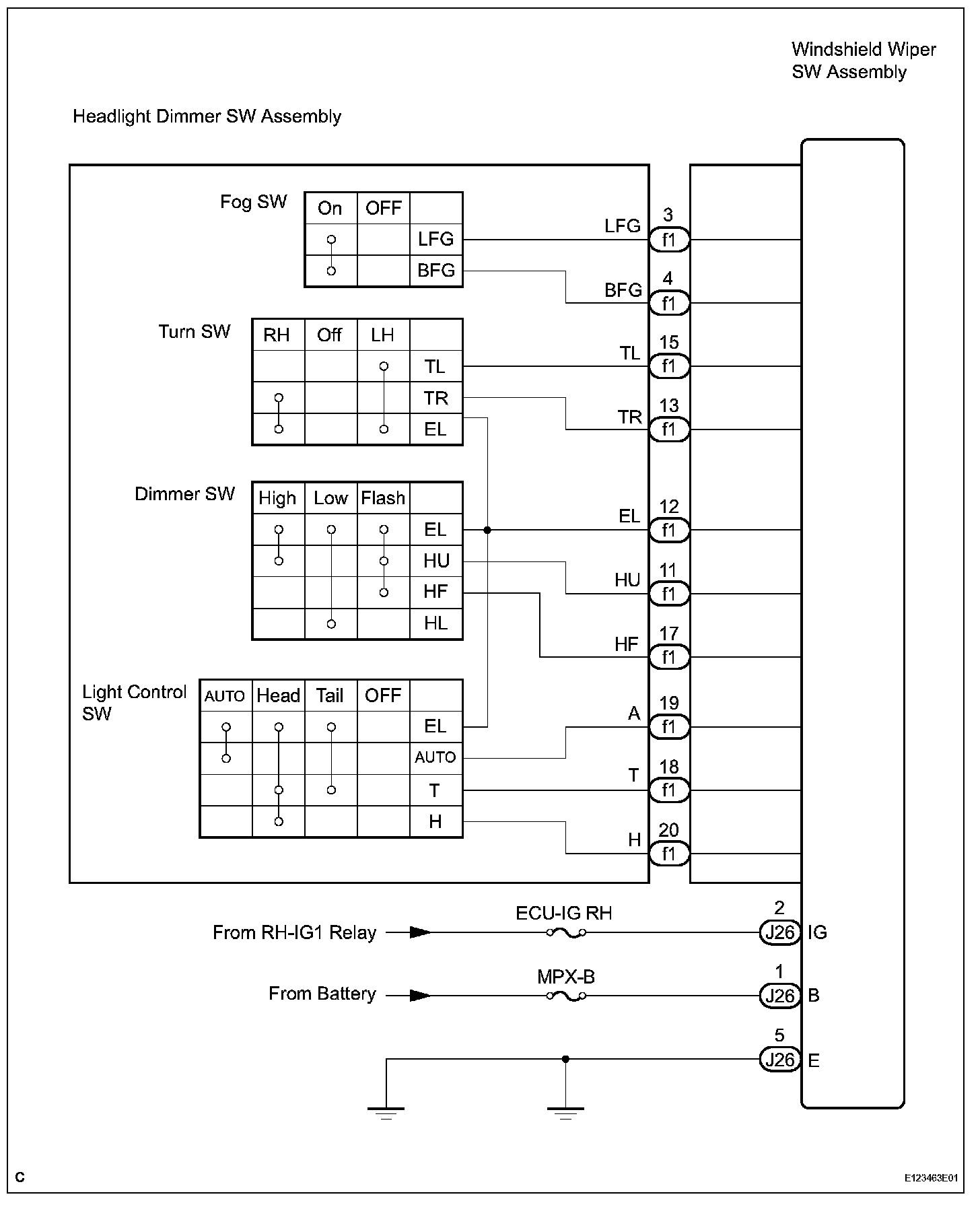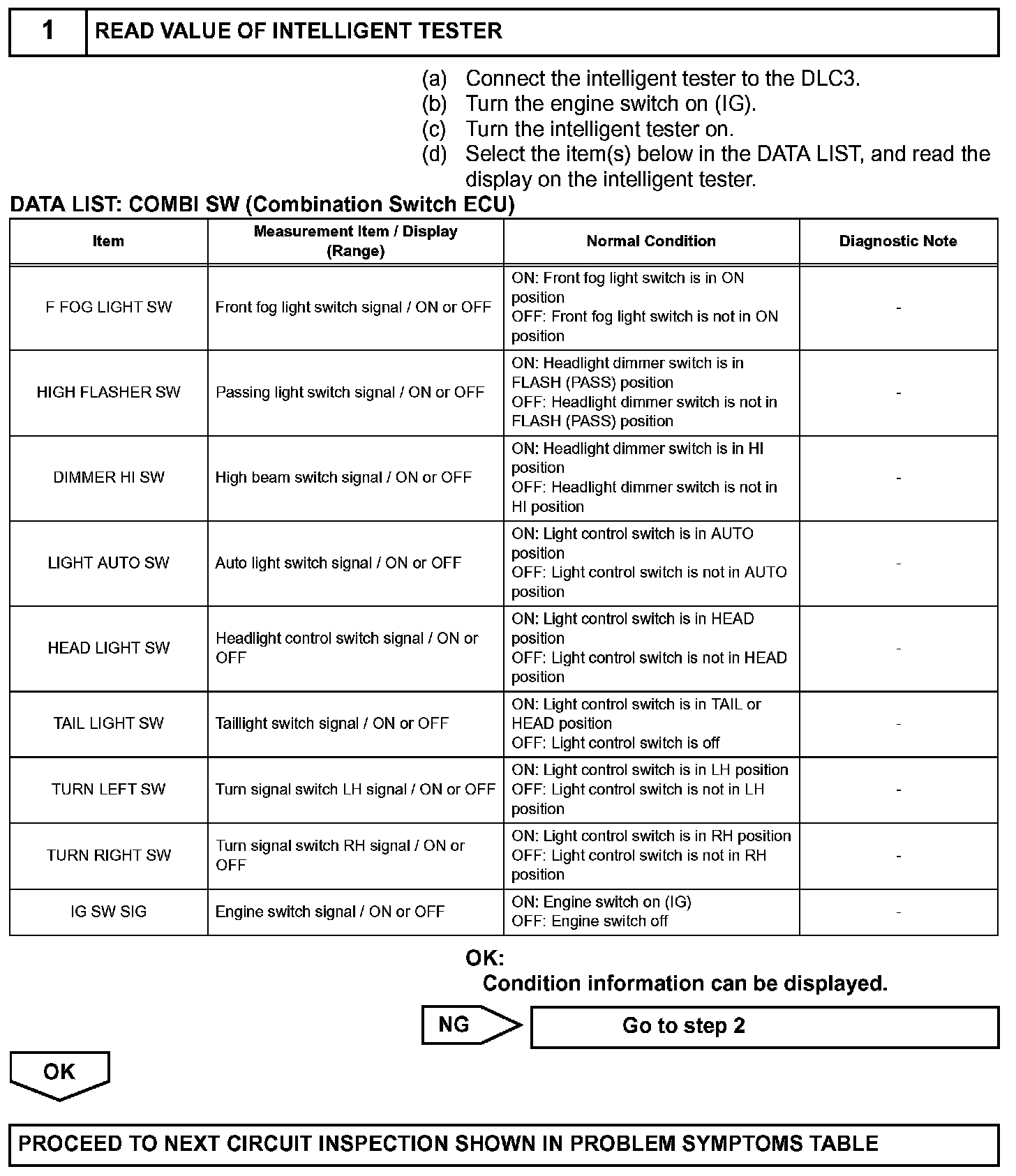 The combination switch ECU then converts these signals to BEAN signals and sends them to each ECU via the multiplex communication system.