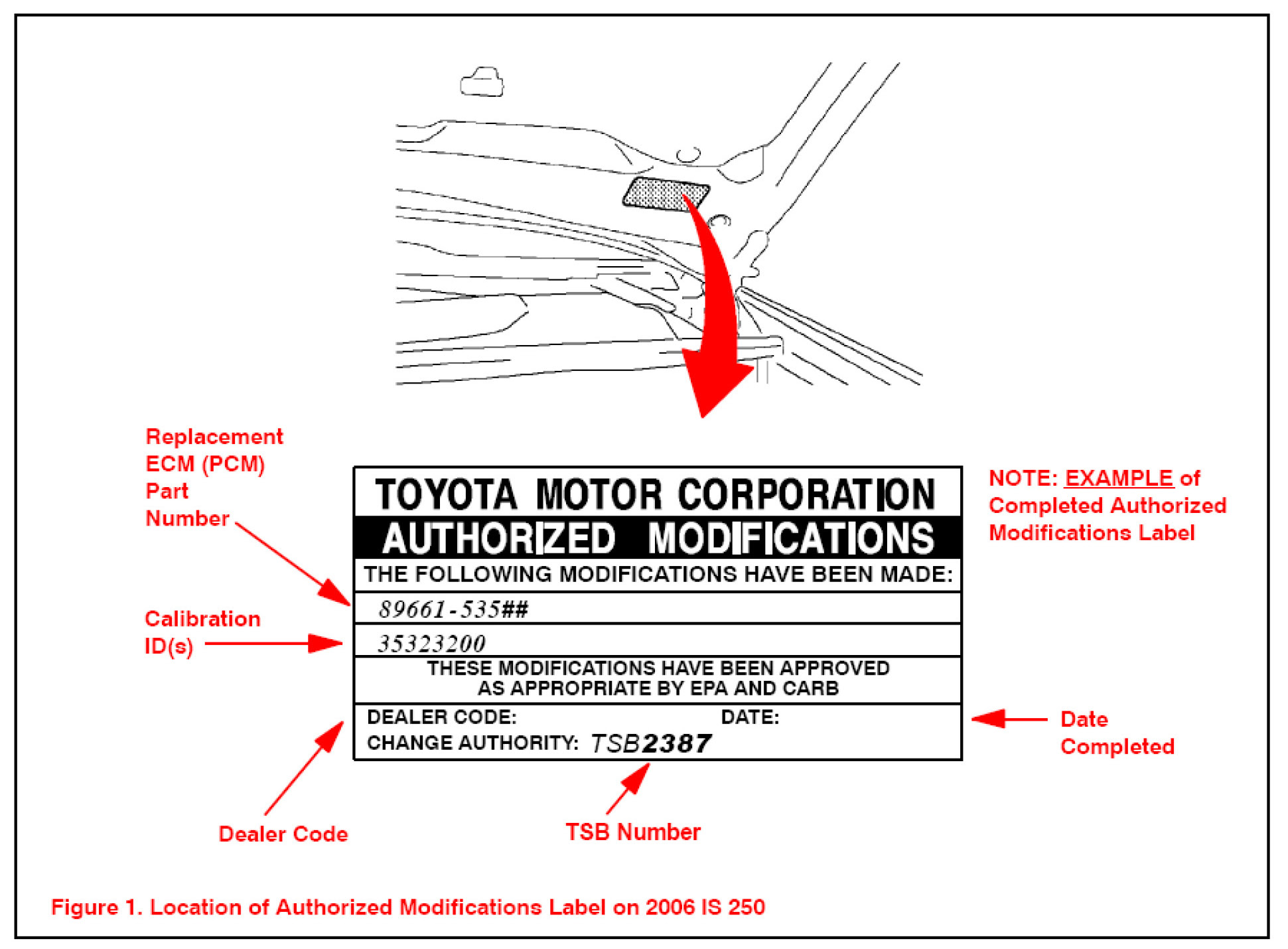 Before proceeding, verify the ECM (PCM) calibration has NOT been updated by checking for the Authorized Modifications Label (shown in step 1 of the Repair Procedure).