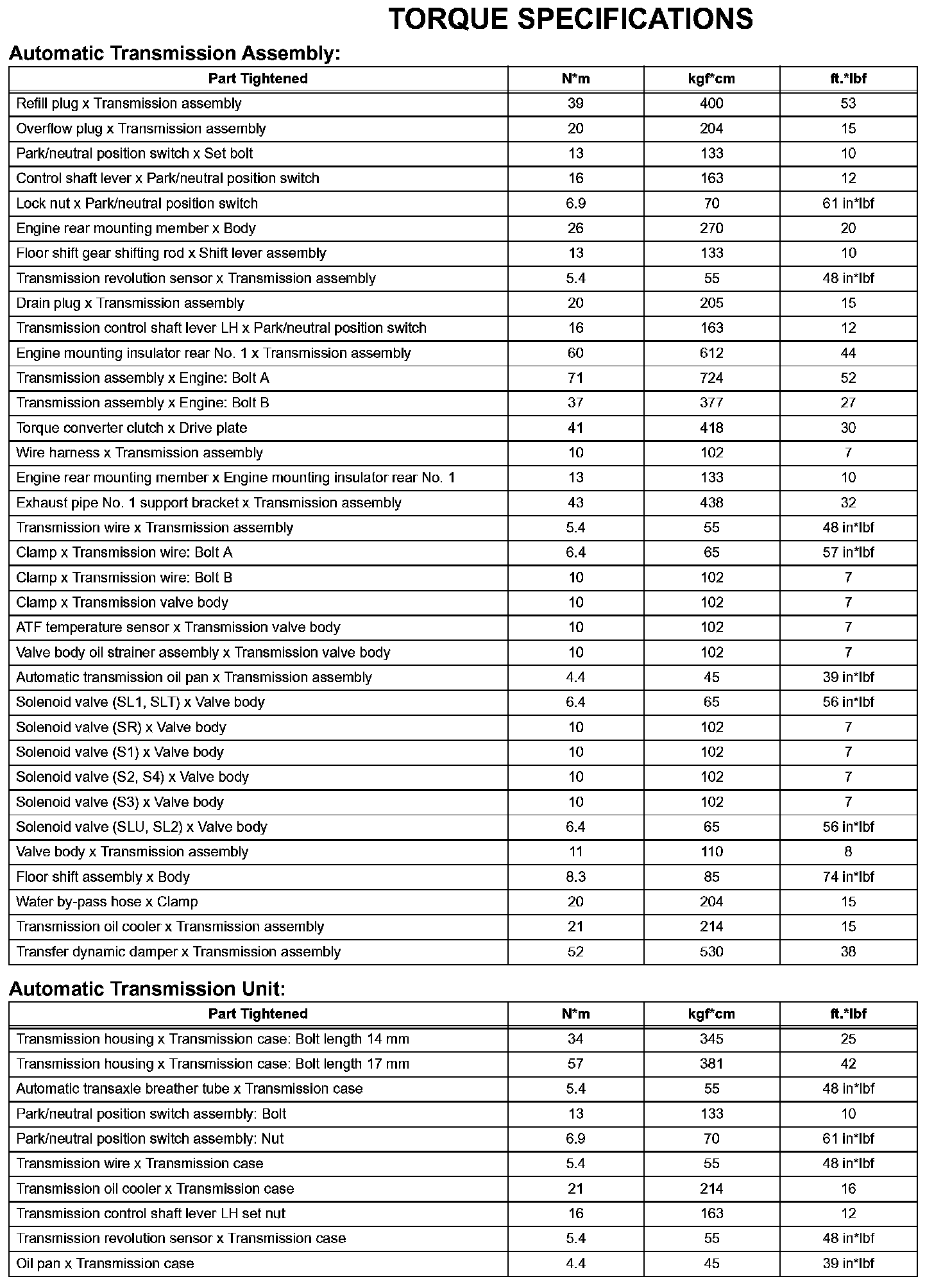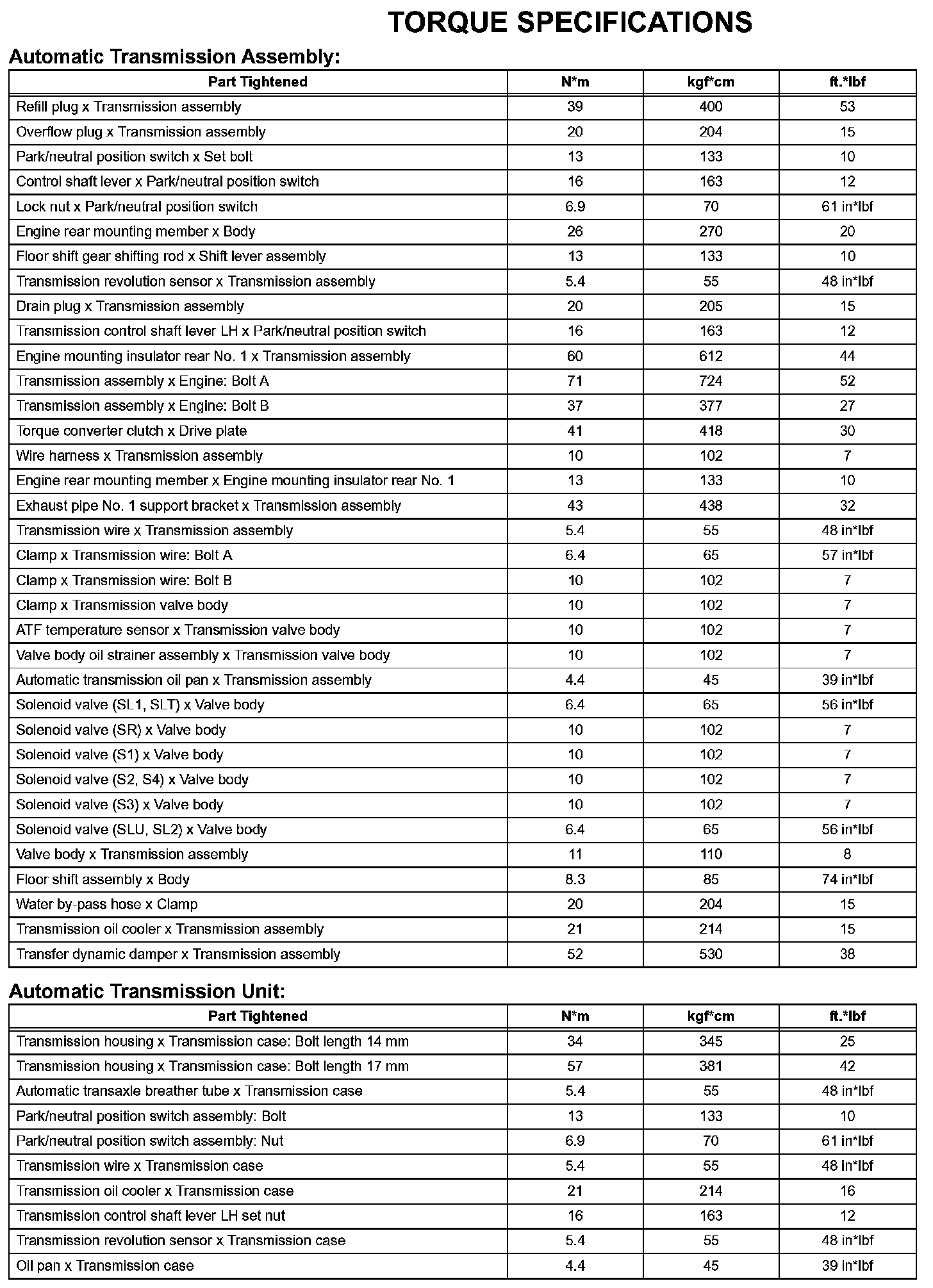 Automatic Transmission - Torque Specifications (Part 1):