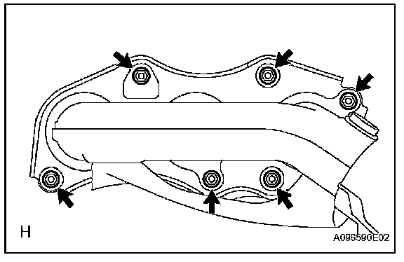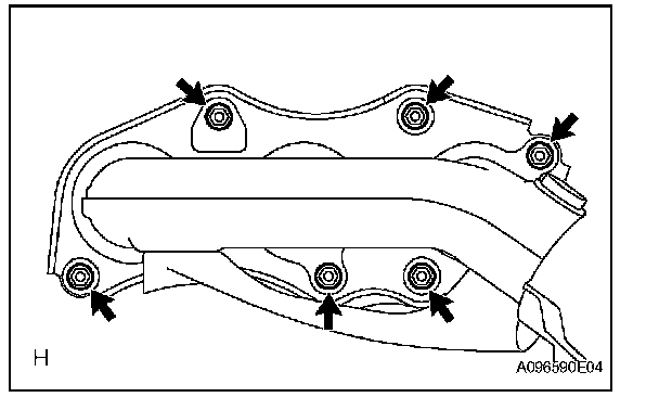 a. Install a new gasket and the exhaust manifold with 6 new nuts.