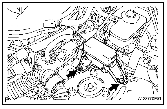 d. Remove the 2 bolts and starter.