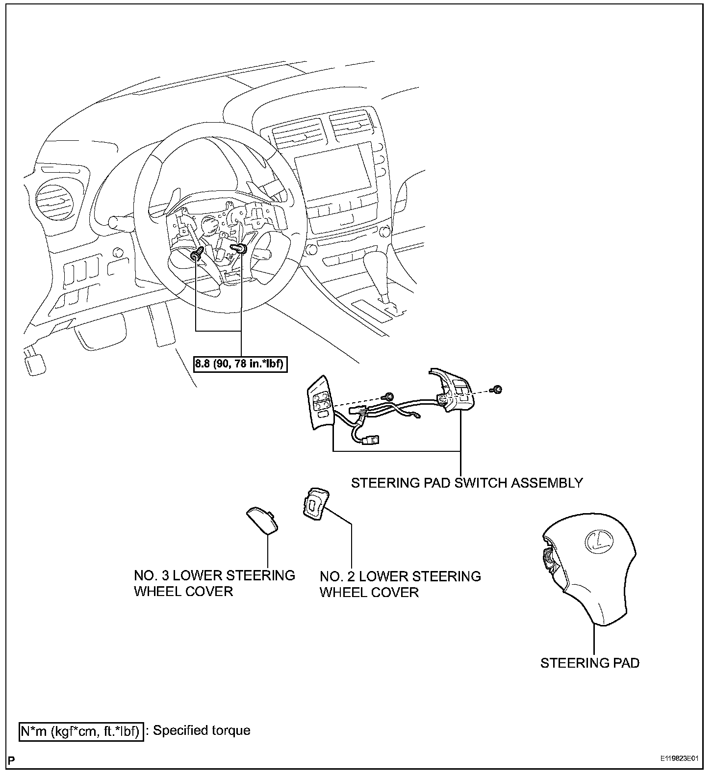 b. Install the steering pad switch assembly with the 2 screws.