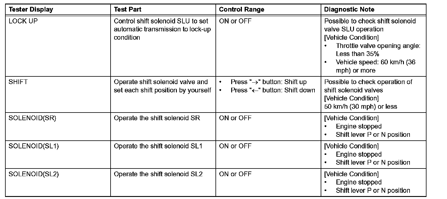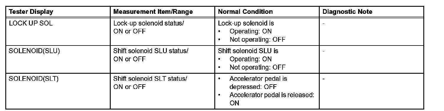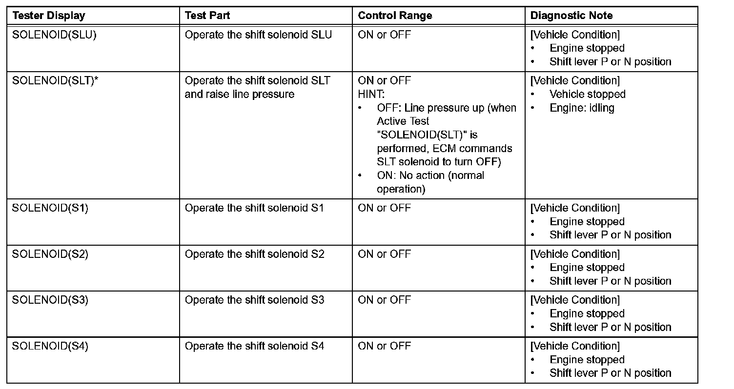 *: "SOLENOID (SLT)" in the ACTIVE TEST is performed to check the line pressure changes by connecting the SST to the automatic transmission, which is used in the HYDRAULIC TEST as well. Hydraulic Test