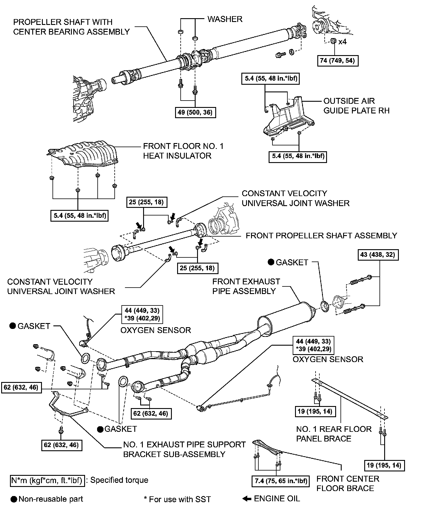 17. INSTALL PROPELLER SHAFT WITH CENTER BEARING ASSEMBLY