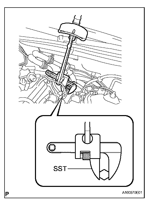 HINT: The torque for use with SST is the torque when SST is used at the position shown in the illustration.