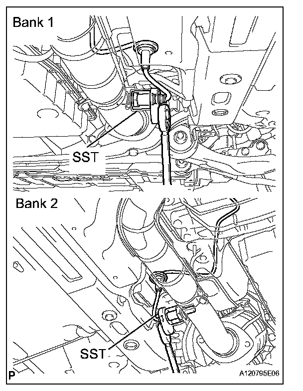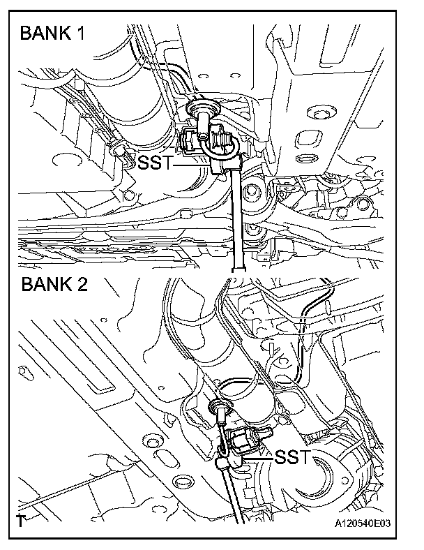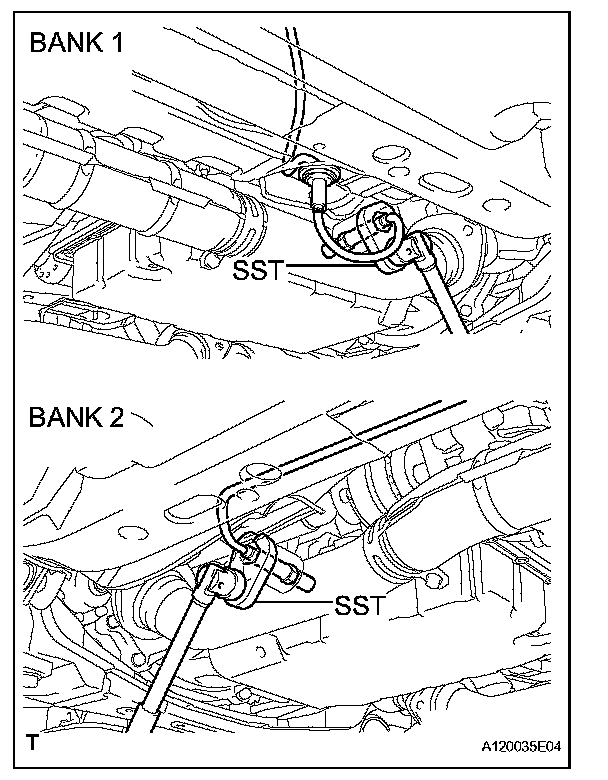 b. Using SST, remove the heated oxygen sensor.