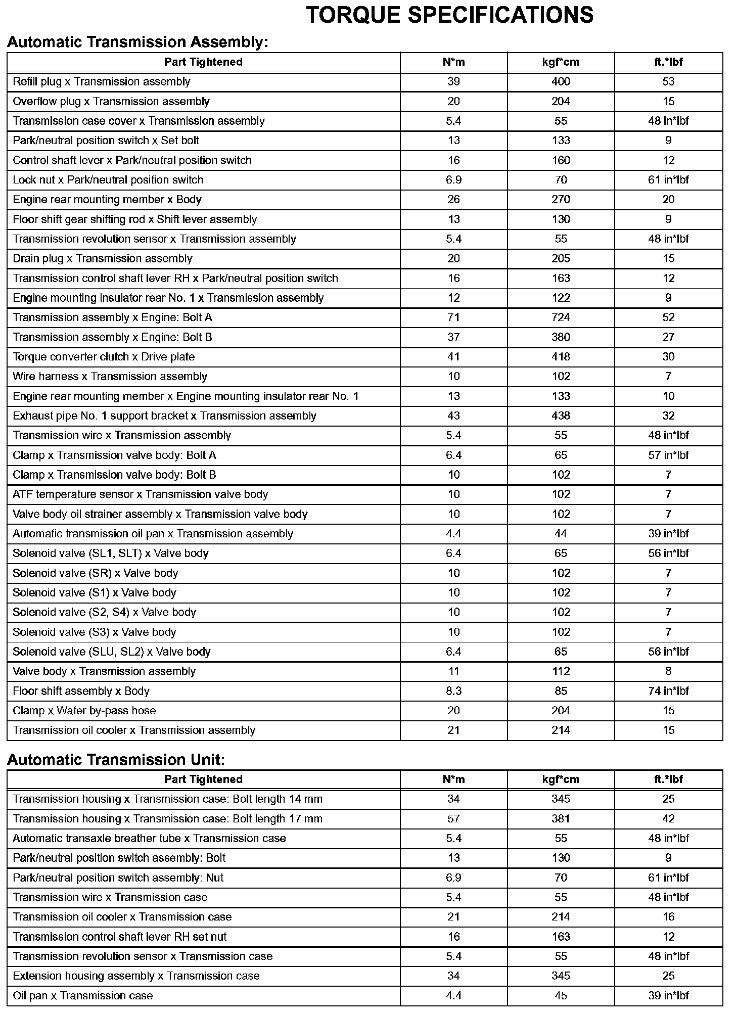 Automatic Transmission - Torque Specifications (Part 1):