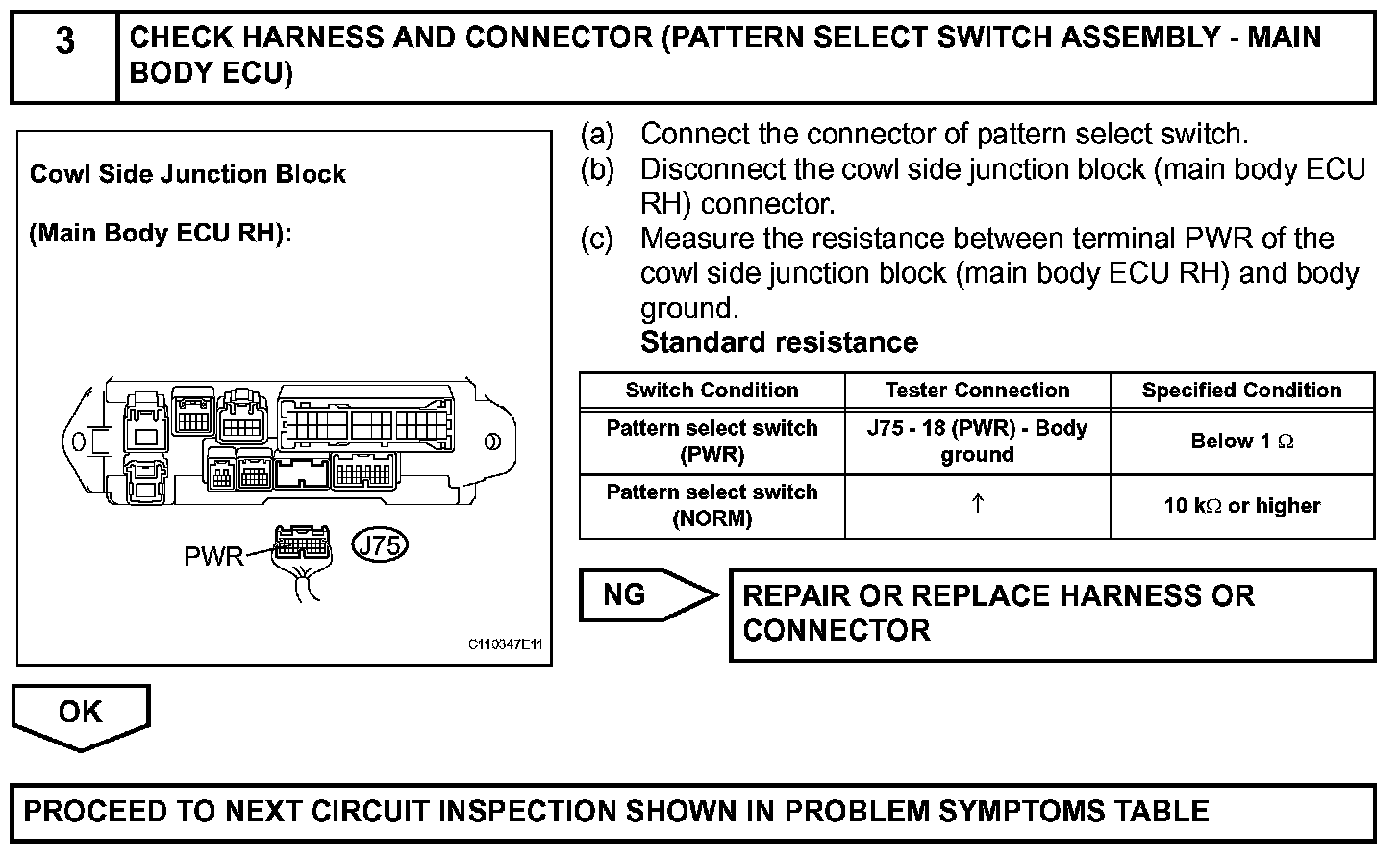 Cowl side J/B ECU receives pattern select switch information, and sends it through the multiplex communication system and CAN system to the ECM.