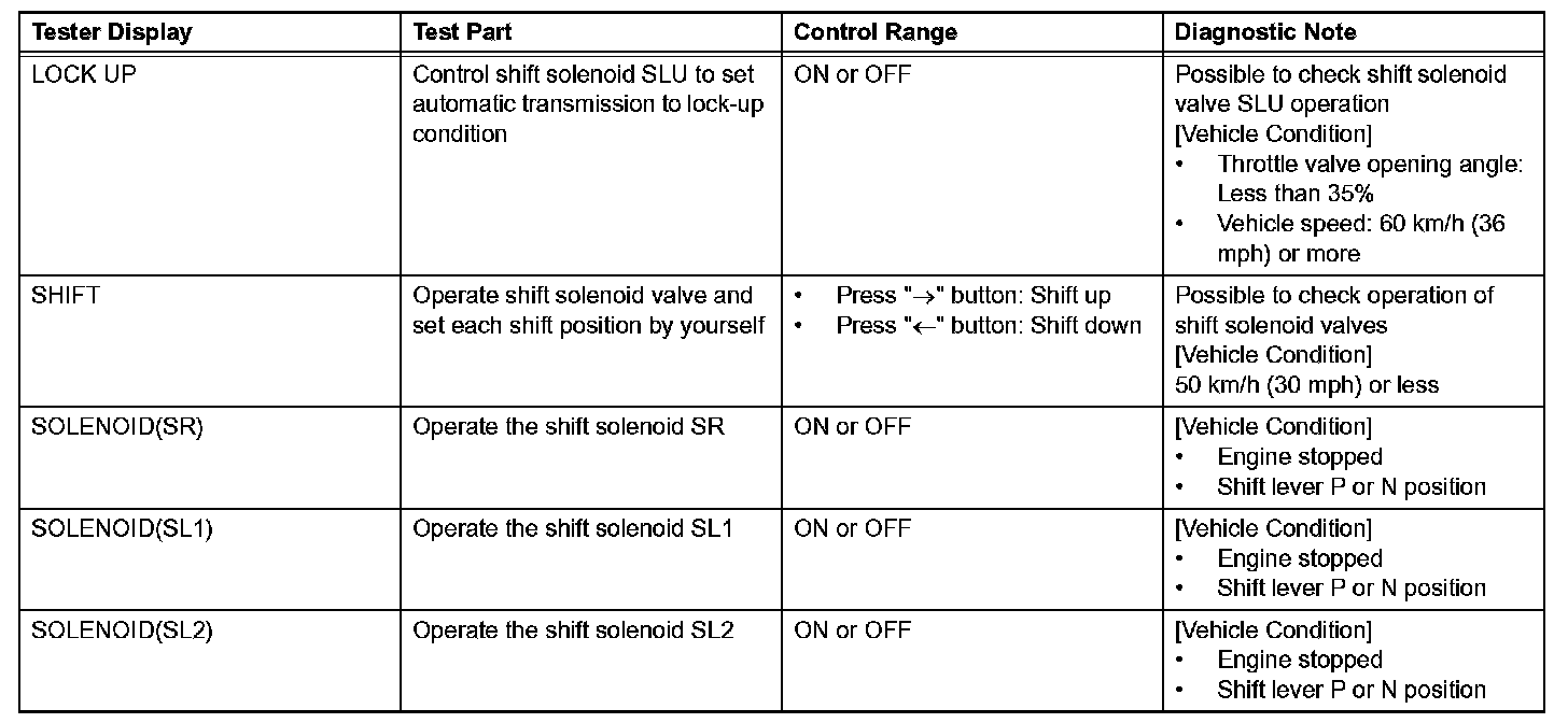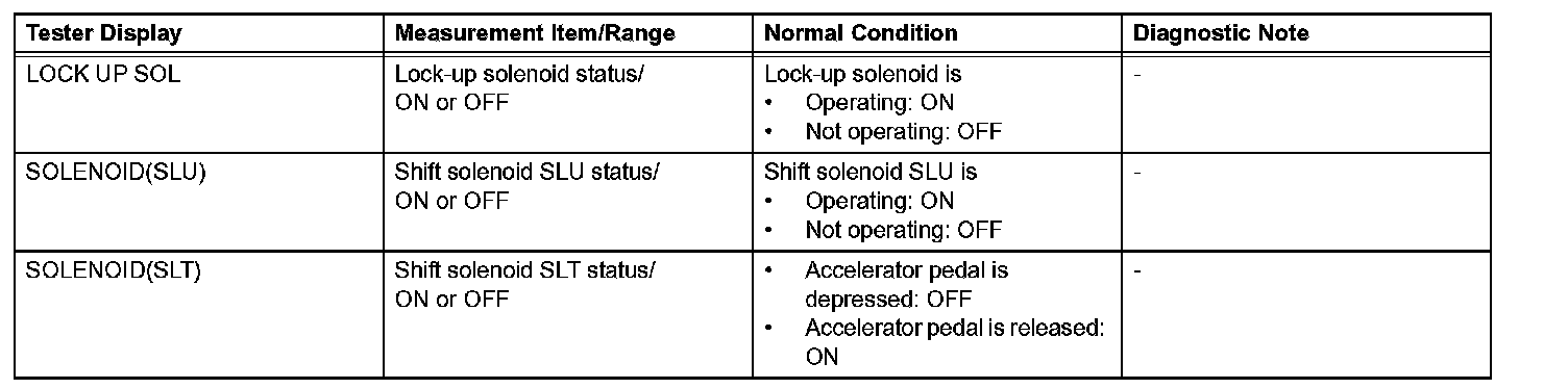 *: "SOLENOID (SLT)" in the ACTIVE TEST is performed to check the line pressure changes by connecting the SST to the automatic transmission, which is used in the HYDRAULIC TEST as well. Hydraulic Test